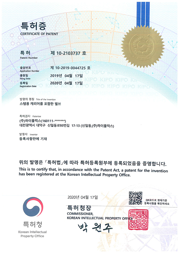 Patent Patent (No. 10-2103737)
