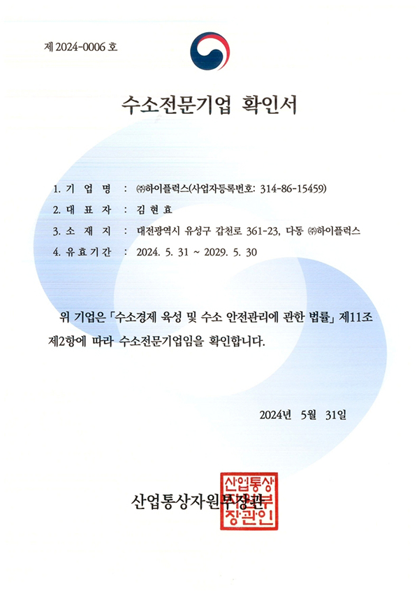 Registration Hydrogen specialized company confirmation (No. 2024-0006)