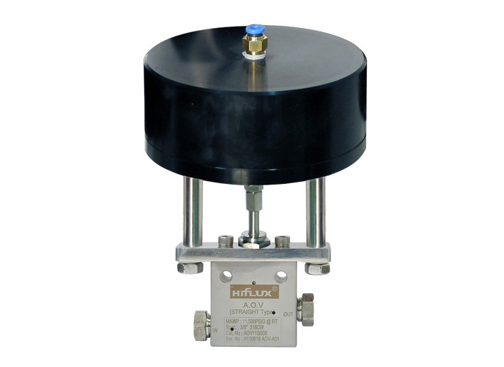 Normal Open Type : When valve is open in normal, if air is supplied, it will close automatically. The minimum working pressure of air is 5㎏f/㎠. Prevents galling due to the no-rotation stem. Packing designed for reliable sealing. Metal to Metal Sealing Type The underbody of A.O.V where liquid or gas passes through also have 4 types as needle valve. Air inlet port : 1/8" PT 6mm hose. 4-pattern body type. (Straight, Angle, 3Way/1on, 3Way/2on pressure type).