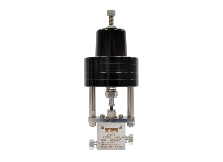 Normal Close Type : When valve is closed in normal, if air is supplied, it will open automatically. The minimum working pressure of air is 5㎏f/㎠. Prevents galling due to the no-rotation stem. Packing designed for reliable sealing. Metal to Metal Sealing Type Adjustable spring tension by adjusting the upper bolt. The underbody of A.O.V where liquid or gas passes through also have 4 types as needle valve. Air inlet port : 1/8" PT 6mm hose. 4-pattern body type (Straight, Angle, 3Way/1on pressure, 3Way/2on pressure type).