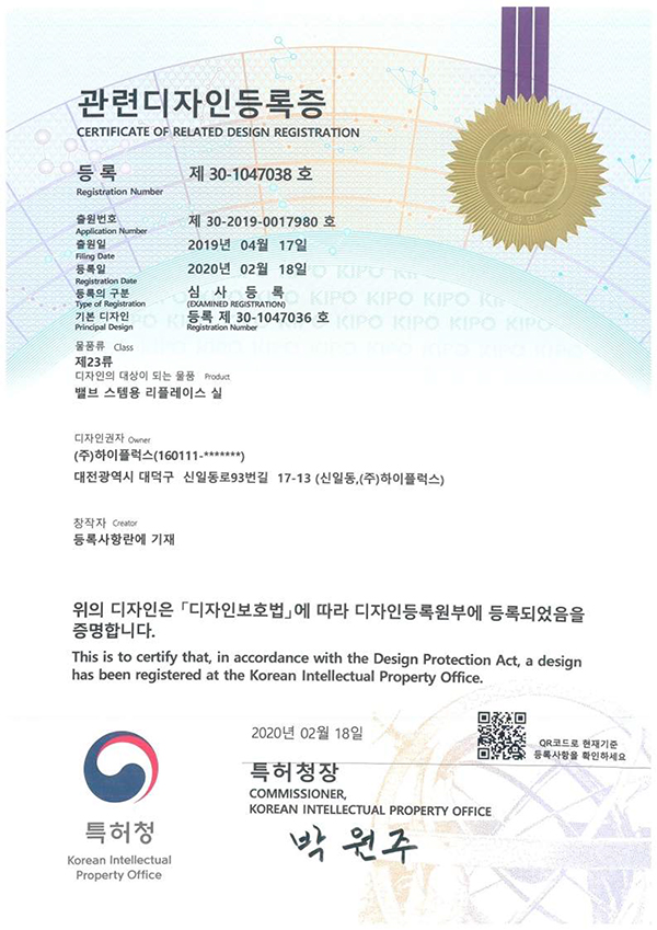 디자인등록 디자인등록증 (제 30-1047036호/제 30-1047038호/제 30-1047039호)
