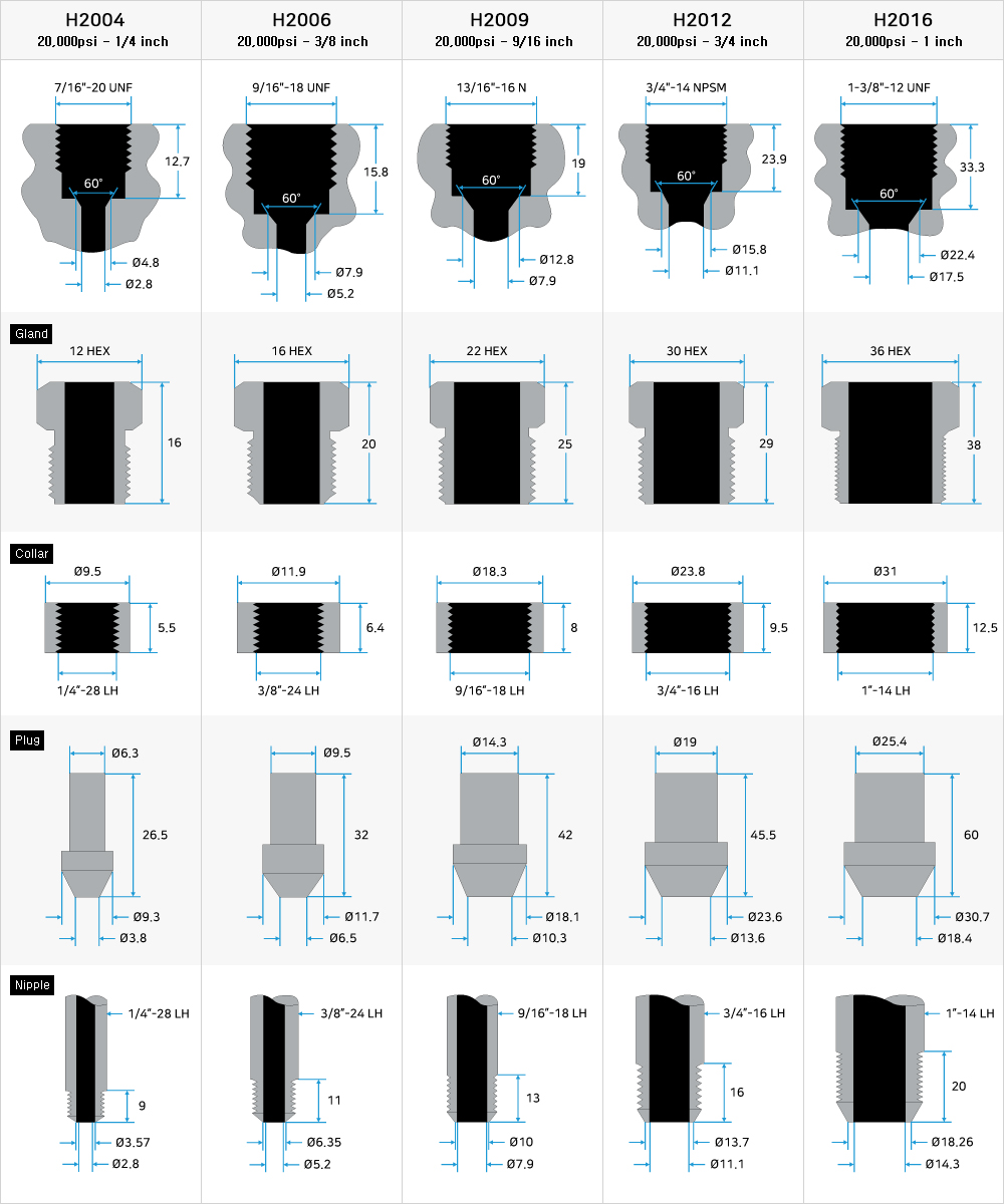 This Cone and Thread connection provides reliable performance for both liquid and gas at high pressure and temperature in an optimal closed manner and is a standard for easy and fast high pressure equipment configurations.